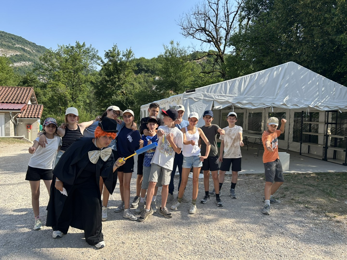 Ce matin, suite à notre demande, les anims nous ont préparé un sagamore. Nous étions repartis en 2 équipes, chacune avec un sorcier (anim). Ensuite, le groupe des natures aventures ont pu monté à poney! Cet aprèm c’était escalade et spéléologie pour les aventures et sensation. Les Summer ont fait une balade jusqu’à la rivière de l’Ain. Le soir c’était bivouac, contes et chamallows grillés et pour les summer/sensation: pantouflette avec un invité spécial !!