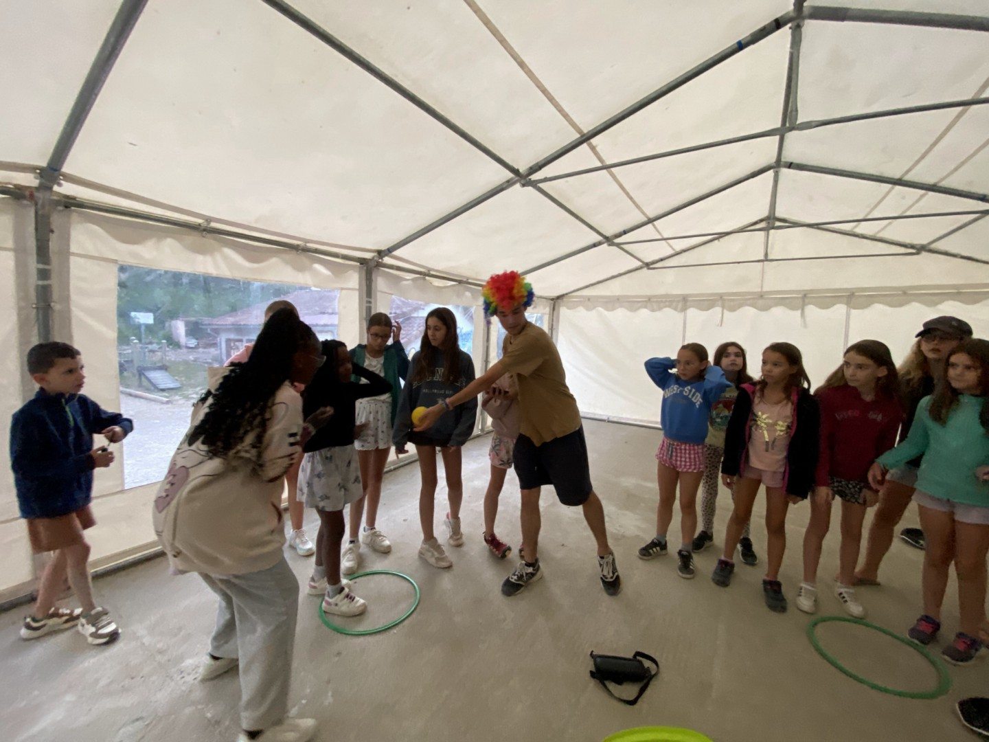 Ce matin nous sommes partis en randonnée avec les anims, de retour au centre c’était balle américaine. Cette après midi nous avons joué au 3 fois rien, un jeu de stand où nous avons du faire appel à notre imagination pour inventer des minis jeux. Ce soir nous avons pu installer notre futur campement pour le bivouac de jeudi et vendredi soir. Notre veillée nous a bien fatigué puisque nous avons joué en équipe à « l’homme en noir » un jeu de rapidité et de stratégie en extérieur. Voici des photos de nous durant cette belle journée toujours sous le soleil (et avec nos casquettes) !!