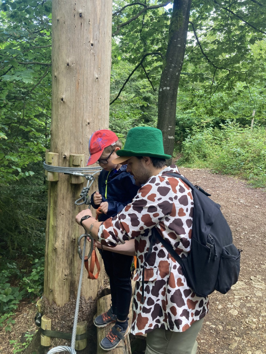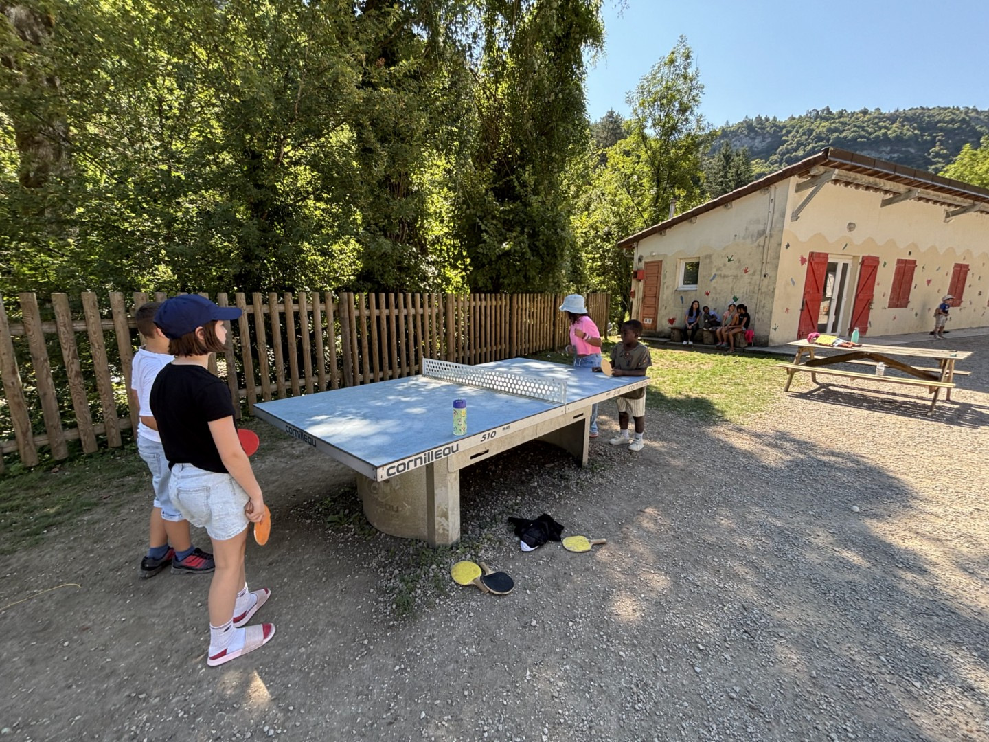 Ce matin nous sommes partis en randonnée avec les anims, de retour au centre c’était balle américaine. Cette après midi nous avons joué au 3 fois rien, un jeu de stand où nous avons du faire appel à notre imagination pour inventer des minis jeux. Ce soir nous avons pu installer notre futur campement pour le bivouac de jeudi et vendredi soir. Notre veillée nous a bien fatigué puisque nous avons joué en équipe à « l’homme en noir » un jeu de rapidité et de stratégie en extérieur. Voici des photos de nous durant cette belle journée toujours sous le soleil (et avec nos casquettes) !!