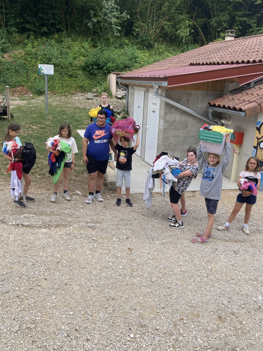 Ce matin nous sommes partis en randonnée avec les anims, de retour au centre c’était balle américaine. Cette après midi nous avons joué au 3 fois rien, un jeu de stand où nous avons du faire appel à notre imagination pour inventer des minis jeux. Ce soir nous avons pu installer notre futur campement pour le bivouac de jeudi et vendredi soir. Notre veillée nous a bien fatigué puisque nous avons joué en équipe à « l’homme en noir » un jeu de rapidité et de stratégie en extérieur. Voici des photos de nous durant cette belle journée toujours sous le soleil (et avec nos casquettes) !!