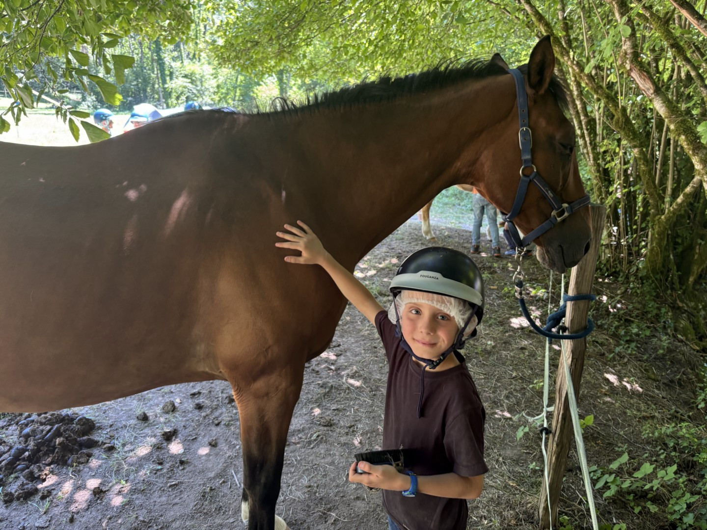 Ce matin nous sommes partis en randonnée avec les anims, de retour au centre c’était balle américaine. Cette après midi nous avons joué au 3 fois rien, un jeu de stand où nous avons du faire appel à notre imagination pour inventer des minis jeux. Ce soir nous avons pu installer notre futur campement pour le bivouac de jeudi et vendredi soir. Notre veillée nous a bien fatigué puisque nous avons joué en équipe à « l’homme en noir » un jeu de rapidité et de stratégie en extérieur. Voici des photos de nous durant cette belle journée toujours sous le soleil (et avec nos casquettes) !!