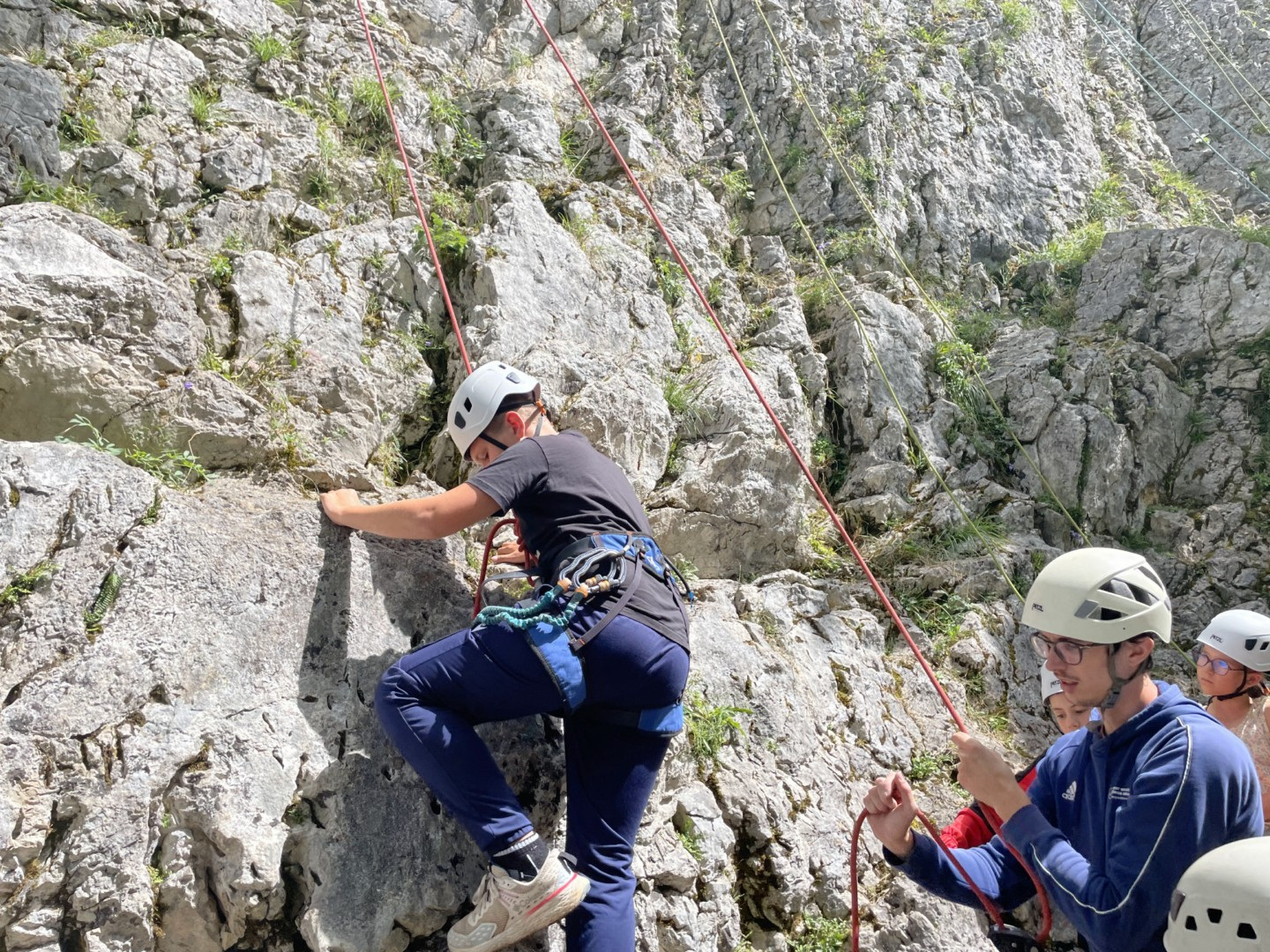 Lundi pluvieux, nous avons été obligé de décaler l’escalade à ce mardi. Quoi de mieux que de profiter d’un grand soleil pour s’initier à l’escalade avec le groupe des aventures. Pour le reste du groupe aventure c’est poney. Farfeuse, petit loup, pécan, mini, Punch ont eu l’occasion de se faire une beauté pour ensuite faire découvrir le centre à nos jeunes cavaliers en herbe. Pendant ce temps-là, les signatures profitent des alentours du centre pour randonner et ensuite s’exercer au land art.