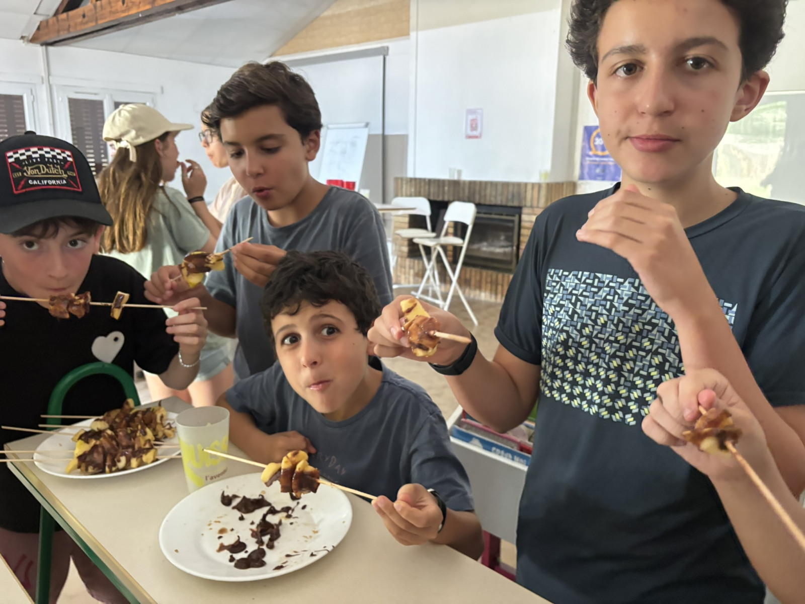 Ce matin le groupe nature/aventure est parti en balade à vélo et a fait quelques achats de souvenirs. Pour le groupe summer/sensation, suite à notre demande, les anims nous ont proposé un douaniers contrebandiers. Certains sont allés à la viaferrata pour cet après midi sous le soleil ! Pour les séjours nature/aventure c’était cuisine (cookies, brownies et brochettes de fruits) puis nous sommes partis nous occuper des poneys.