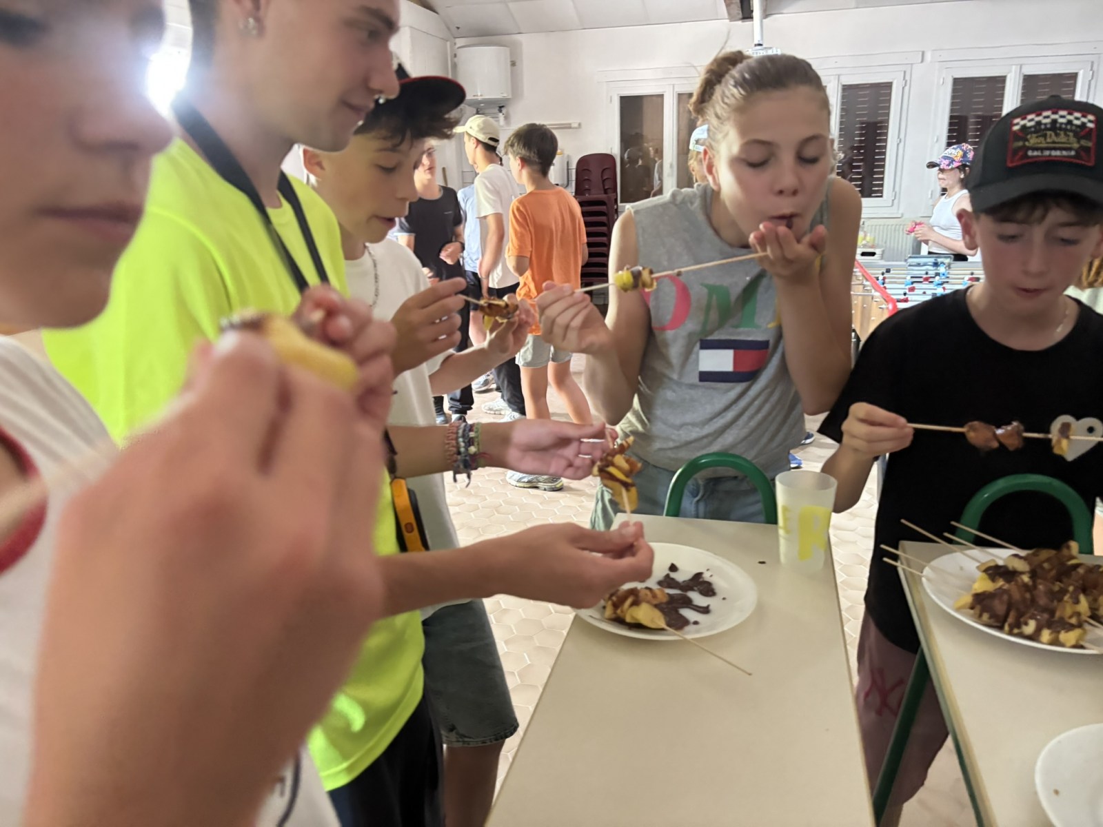 Ce matin le groupe nature/aventure est parti en balade à vélo et a fait quelques achats de souvenirs. Pour le groupe summer/sensation, suite à notre demande, les anims nous ont proposé un douaniers contrebandiers. Certains sont allés à la viaferrata pour cet après midi sous le soleil ! Pour les séjours nature/aventure c’était cuisine (cookies, brownies et brochettes de fruits) puis nous sommes partis nous occuper des poneys.